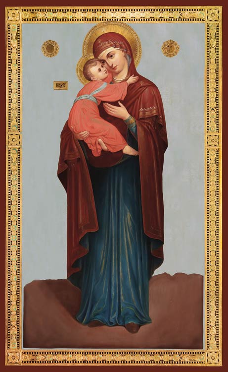 Владимирская икона Божией Матери по преданию является очень древним чудотворным списком с иконы Богородицы, написанной апостолом Лукой на доске от стола, за которым принимал пищу Христос со своей Матерью. В начале 12-го века список с иконы был привезен в Киев из Константинополя, а затем перенесен во Владимир, где пробыл 242 года. В 1395 году во время нашествия Тамерлана икону перенесли в Москву, в Успенский собор Московского Кремля, надеясь на спасение от войск захватчика. Тамерлану было видение, в котором величественная Дева во главе ангельского воинства устремилась на его полки. Проснувшись, хан приказал войскам отступить. Святая икона еще не раз становилась на защиту Руси. 23 июня 1480 года чудо, явленное Пресвятой Богородицей, заставило отступить полки Золотой орды во время знаменитого стояния на реке Угре. 21 мая 1521 г. с помощью Богородицы были остановлены войска крымских татар всего в нескольких километрах от Москвы. В последствие все Российские монархи помазывались на престол именно перед иконой Божией матери «Владимирская».