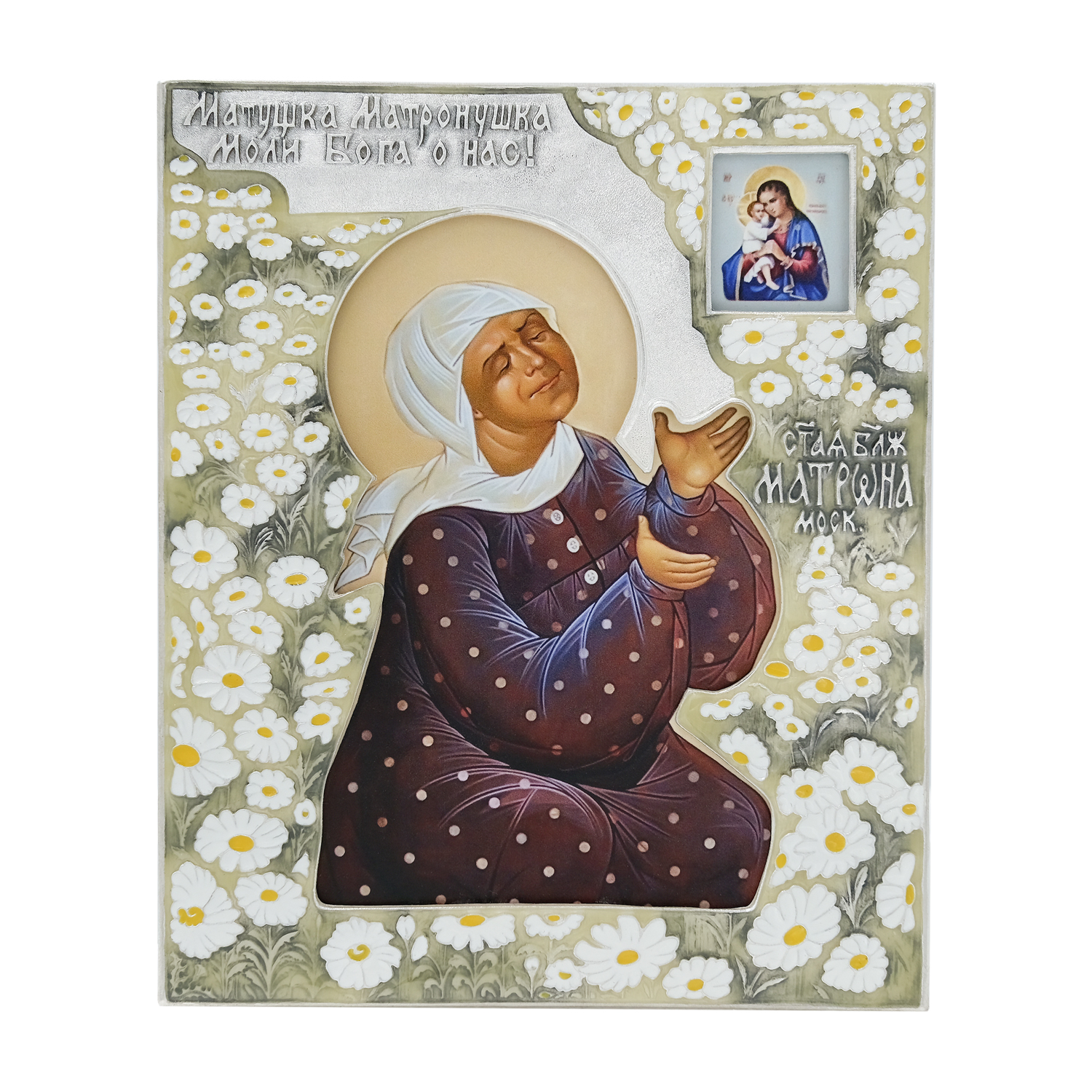В знак благодарности нашей любимой святой мы украсили ее образ ромашками – символом России, русской природы и милой простоты.