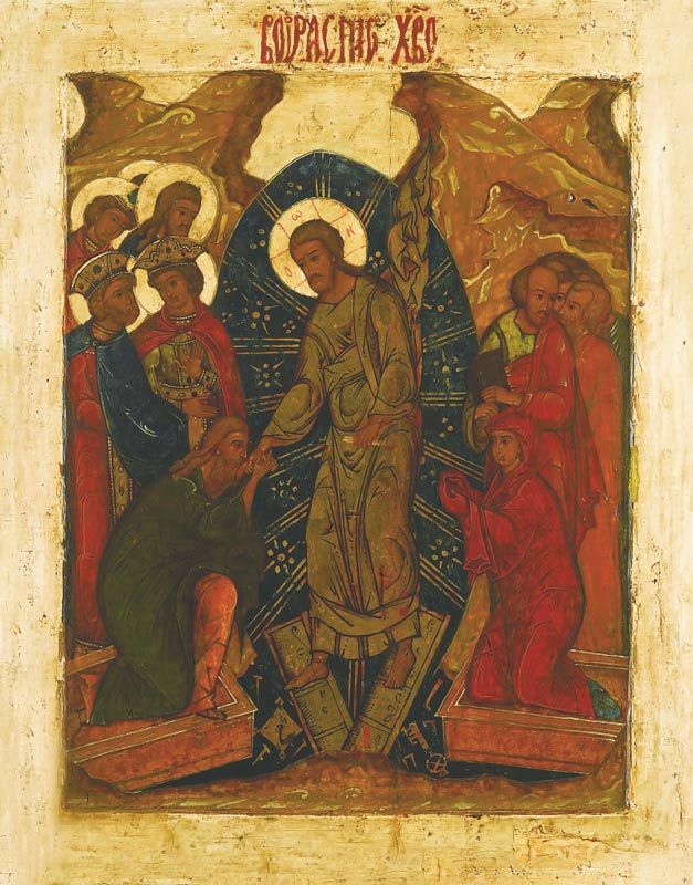 На иконах Воскресения Христова древняя каноническая православная иконография изображает нам, как ни странно, не само таинство Воскресения, а «Сошествие Господа нашего Иисуса Христа во ад». До конца XVI в. в русской иконописи это было единственное иконографическое решение изображения Воскресения Христова.
