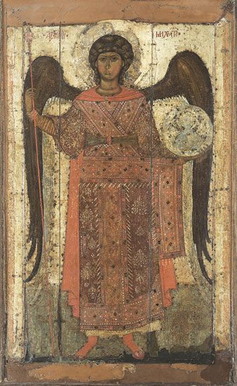 Церковь почитает архангела Михаила как защитника веры и борца против ересей и всякого зла. На иконах его изображают с огненным мечом в руке, или копьем низвергающим диавола.