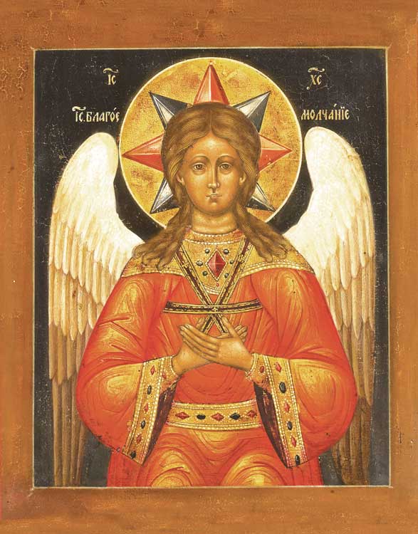 Спас Благое Молчание — очень редко встречающийся иконографический образ Спасителя. На иконе Христос изображен до воплощения — до своего прихода к людям. Этот сюжет появляется на Руси в XV веке, он восходит к византийской иконографии Ангела Великого Совета. Спаситель представлен в ангельском чине, в виде юноши с крыльями за спиной, в белой далматике с широкими рукавами. Для Христа в таком изображении характерны «нетленная красота кроткого и молчаливого духа», умеренность, которая «не возопиет и не возвысит голоса своего, и не даст услышать его на улицах», кротость того, кто «страдал добровольно и не открывал уст Своих; как овца, веден Он был на заклание, и как агнец пред стригущим его безгласен». Отсутствие свитка или книги в руках, сложенные крест-накрест и прижатые к груди руки, как в причастии, жест покоя, смирения и молитвы, свидетельствуют о жертвенной миссии Спасителя. В Его молчании — приглашение к внутренней молитве, к которой призывал псалмописец Давид: «Положи, Господи, охрану устам моим и огради двери уст моих». Нимб Спасителя еще не крестчатый, а подобен восьмиконечной звезде (единственный иконографический тип изображения Христа с нимбом Господа Саваофа). Звезду образуют два квадрата, один из которых обозначает божественность Творца-Вседержителя, другой знаменует собой мрак непостижимости Божества. Икона Благое молчание особо распространена среди монашества, служа примером молчания и «умственной молитвы».
