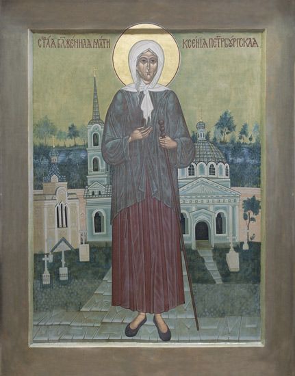 Святая блаженная Ксения родилась в первой половине XVIII века от благочестивых и благородных родителей. По достижении совершеннолетия Ксения Григорьевна сочеталась браком с придворным певчим и жила с супругом в Санкт-Петербурге. Вскоре супруг Ксении скончался, и