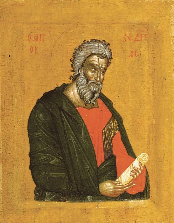 Свою кончину апостол встретил в городе Патрасе. Он был распят на косом кресте, который с тех пор мы и называем Андреевским.