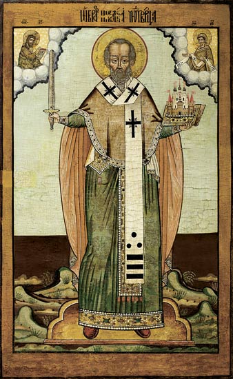 Сохранилось предание о помощи святого Чудотворца жителям города Можайска, осажденного в XIV веке монголо-татарами. В ответ на молитвенное к нему обращение в одной из церквей города последовало чудесное видение: Святой Николай возник на небе, в грозном виде стоящим над собором. Одной рукой он поднял сверкавший меч, готовый опуститься на головы врагов, в другой держал как бы град Можайск в знак охранения его. Меч и храм, как символы «военного одоления» и помощи в ратных делах, одновременно напоминали о горячей защите православной веры и учения Христа. Устрашенные грозным знамением, враги в ужасе бежали от стен Можайска, а жители в благодарное воспоминание могущественного заступничества вскоре вырезали из дерева изображение своего святого покровителя в том образе, который увидели на небе. Известный под именем «Николы Можайского» этот образ стал одним из самых распространенных и любимых на Руси.