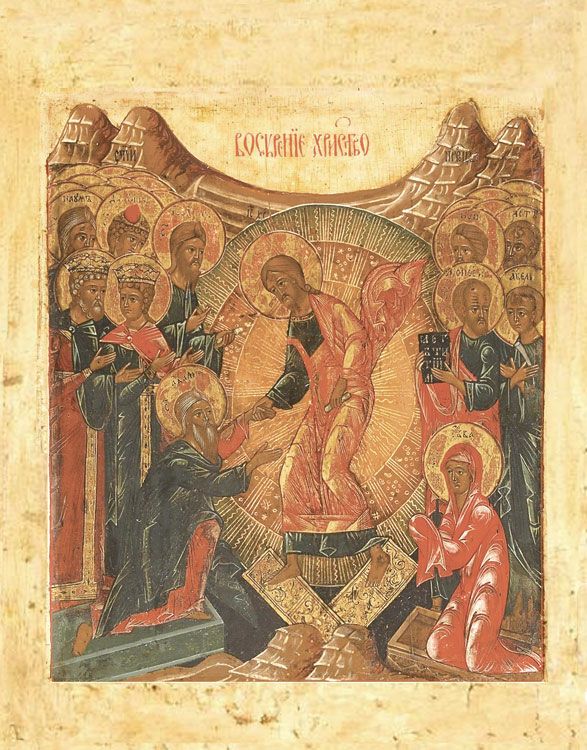 На иконах Воскресения Христова древняя каноническая православная иконография изображает нам, как ни странно, не само таинство Воскресения, а «Сошествие Господа нашего Иисуса Христа во ад». До конца XVI в. в русской иконописи это было единственное иконографическое решение изображения Воскресения Христова.