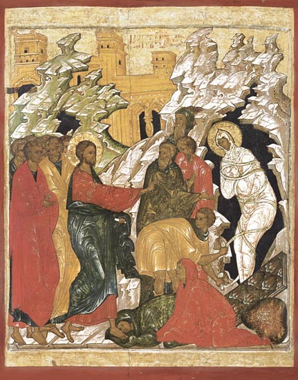 О Воскрешении Лазаря рассказывается в Евангелии от Иоанна (Ин. 11: 1-45). Евангелие повествует, что в Вифании тяжело заболел Лазарь, брат Марии и Марфы. Сестры отправили весть Иисусу о болезни брата, но Господь пришел в Вифанию только через четыре дня после смерти и погребения Лазаря, но пообещал Марфе, вышедшей его встречать, что ее брат воскреснет. Христос в сопровождении апостолов, скорбящих сестер и иудеев отправился к месту погребения Лазаря. Спаситель повелел отвалить камень от пещеры и, возблагодарив Отца Своего, воззвал: «Лазарь, гряди вон!» (Ин. 11: 43). Лазарь вышел к собравшимся обвитый погребальными пеленами, и под влиянием явленного чуда многие иудеи уверовали во Христа.