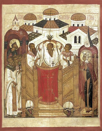 Святая царица Елена ознаменовала места, связанные с земной жизнью Спасителя, основанием более 80 храмов, воздвигнутых в Вифлееме. В Константинополь святая Елена привезла с собой часть Животворящего Древа и гвозди. Равноапостольный император Константин повелел воздвигнуть в Иерусалиме величественный и обширный храм в честь Воскресения Христова. Храм строился около 10 лет и был освящен 13 сентября 335 года. На следующий день, 14 сентября, установлено было праздновать Воздвижение Честного и Животворящего Креста.
