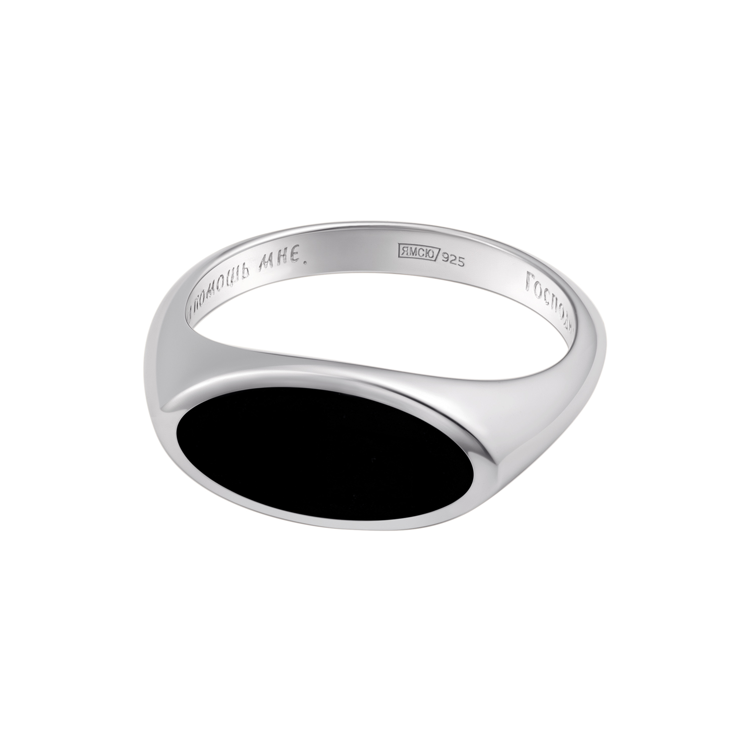 Для получения матовой эмали с бархатистым эффектом мастера «Софии» использовали особый способ обработки горячей эмали. Черный матовый цвет в сочетании с овальной формой придает кольцу солидный и благородный вид.