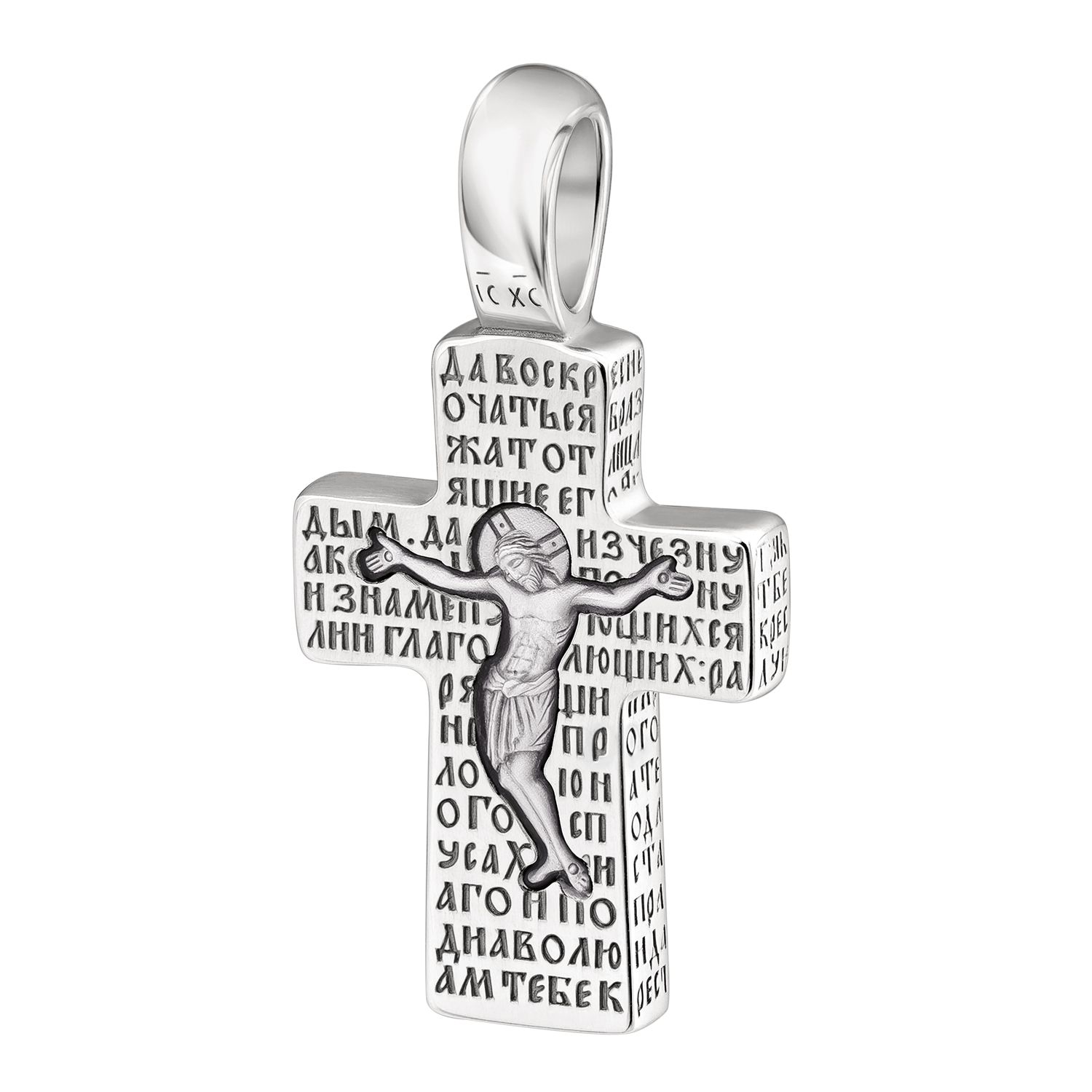 Эти два духовных оружия объединены в нашем изделии. По всей его поверхности проходят слова молитвы Честному Кресту: «Да воскреснет Бог, и расточатся врази Его...»К этой молитве, основанной на речи святых царя Давида и пророка Моисея, христиане прибегают уже тысячи лет в минуты страха, паники и искушений. И Господь всегда помогает!