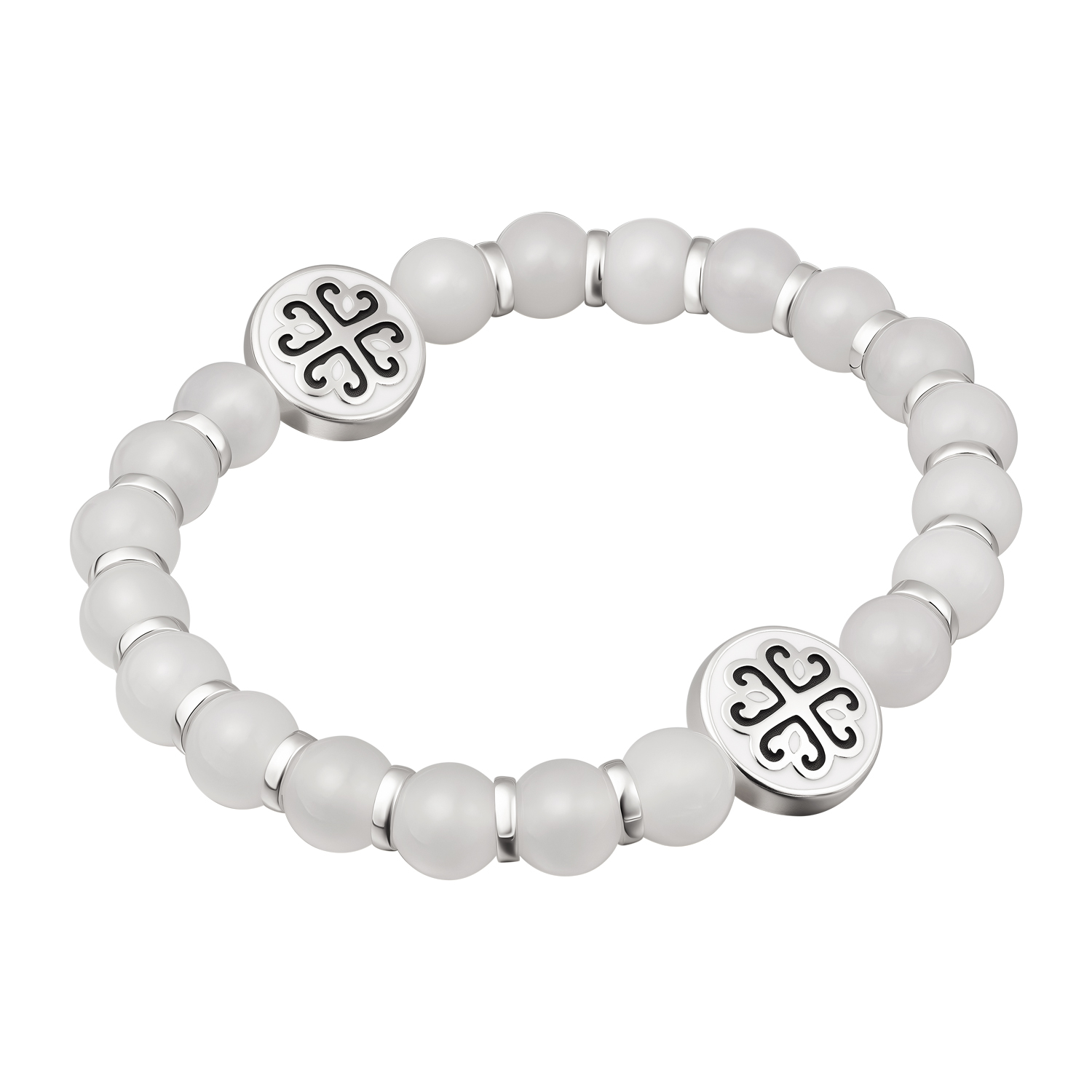 [~DETAIL_TEXT] => Четки - браслет из белого агата с круглыми бусинами, разделенными плоскими серебряными кольцами. Две крупные бусины из серебра украшены крестом на эмали и резной молитвой "Господи, помилуй".