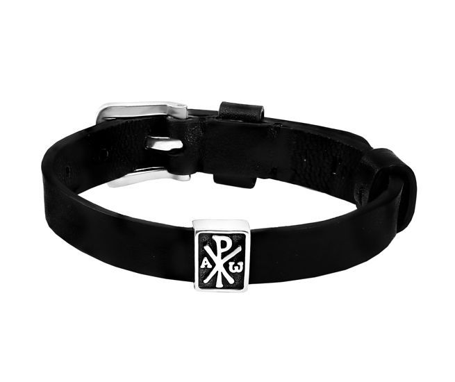 В комплекте идёт кожаная основа и бусина-чарм (шарм) с хризмой.
