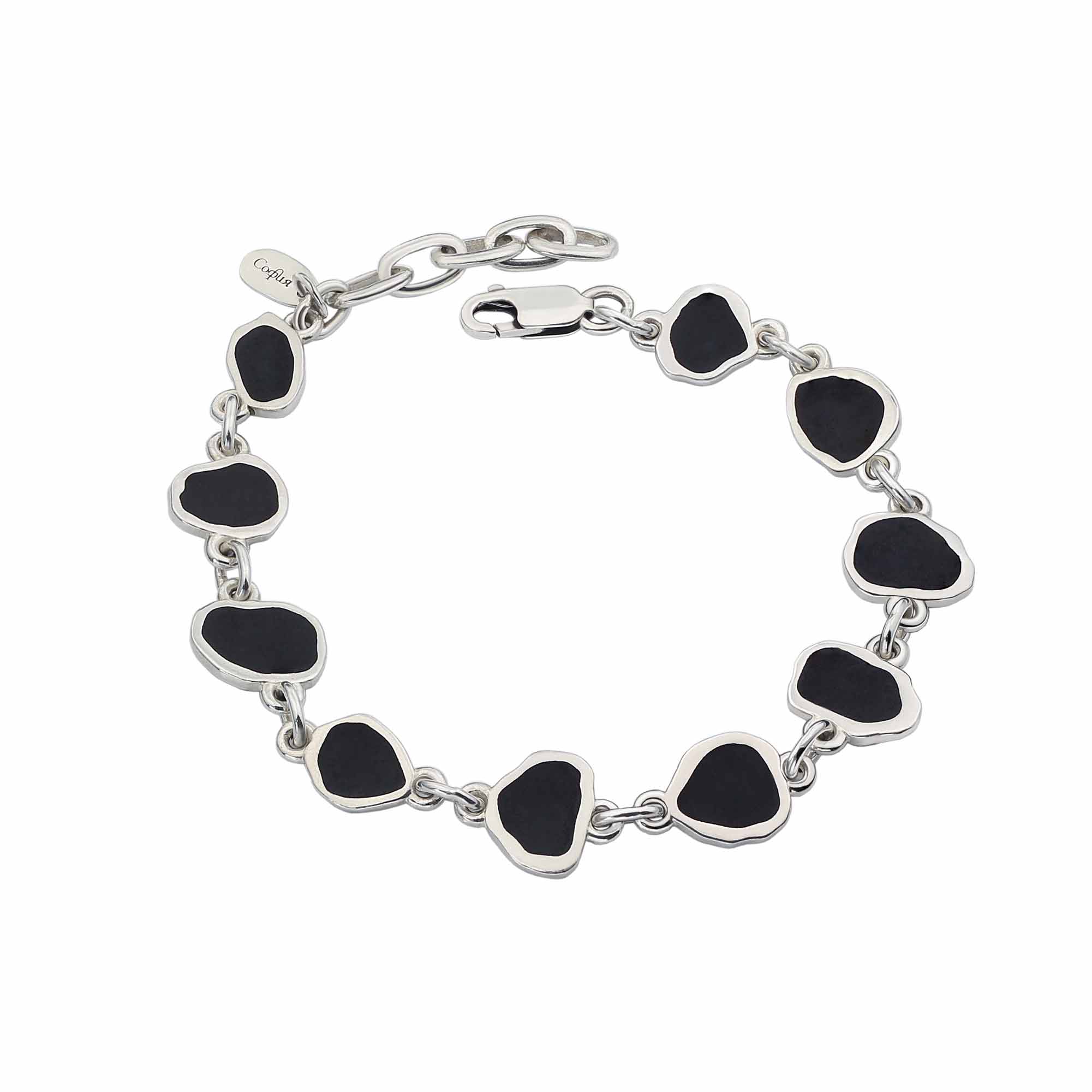 Изделия смотрятся благородно и статусно за счет элегантного дизайна и оттенков. Браслет черного цвета подчеркивает красоту натурального материала, поэтому его сделали матовым, напоминающим бархат.