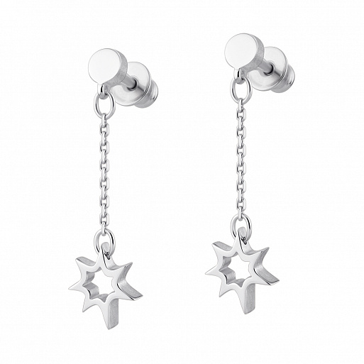 Вифлеемскую звезду олицетворяют звездочки на этих серьгах. Они ассиметричной и объемной формы. В сочетании с тоненькими цепочками украшение смотрится утонченно и изящно.