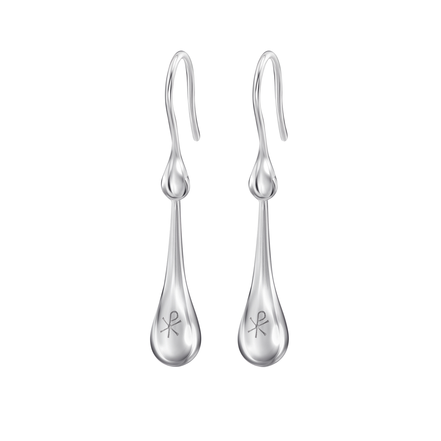 Серебряные женские серьги с изображением христианского символа Хризма на внешней стороне.