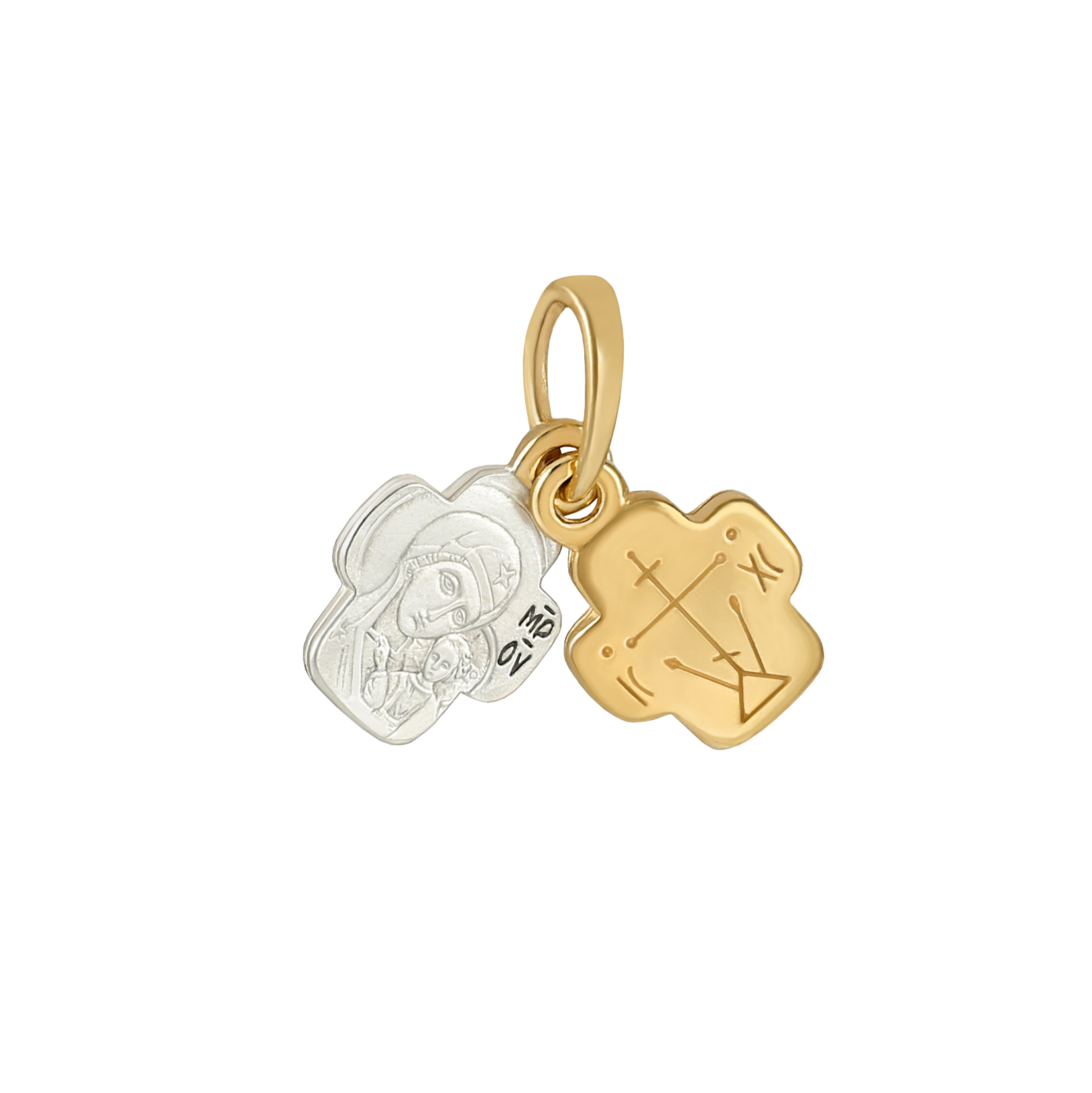 [~DETAIL_TEXT] => Этот миниатюрный каноничный крестик необычен тем, что на одну петельку крепятся два креста — лицевой и Богородичный. Первый — позолоченный, как символ чистоты и света. Второй — серебряный, с ликами Богородицы и Богомладенца. На обратной стороне крестов надписи «Спаси и сохрани» и «Ника».
