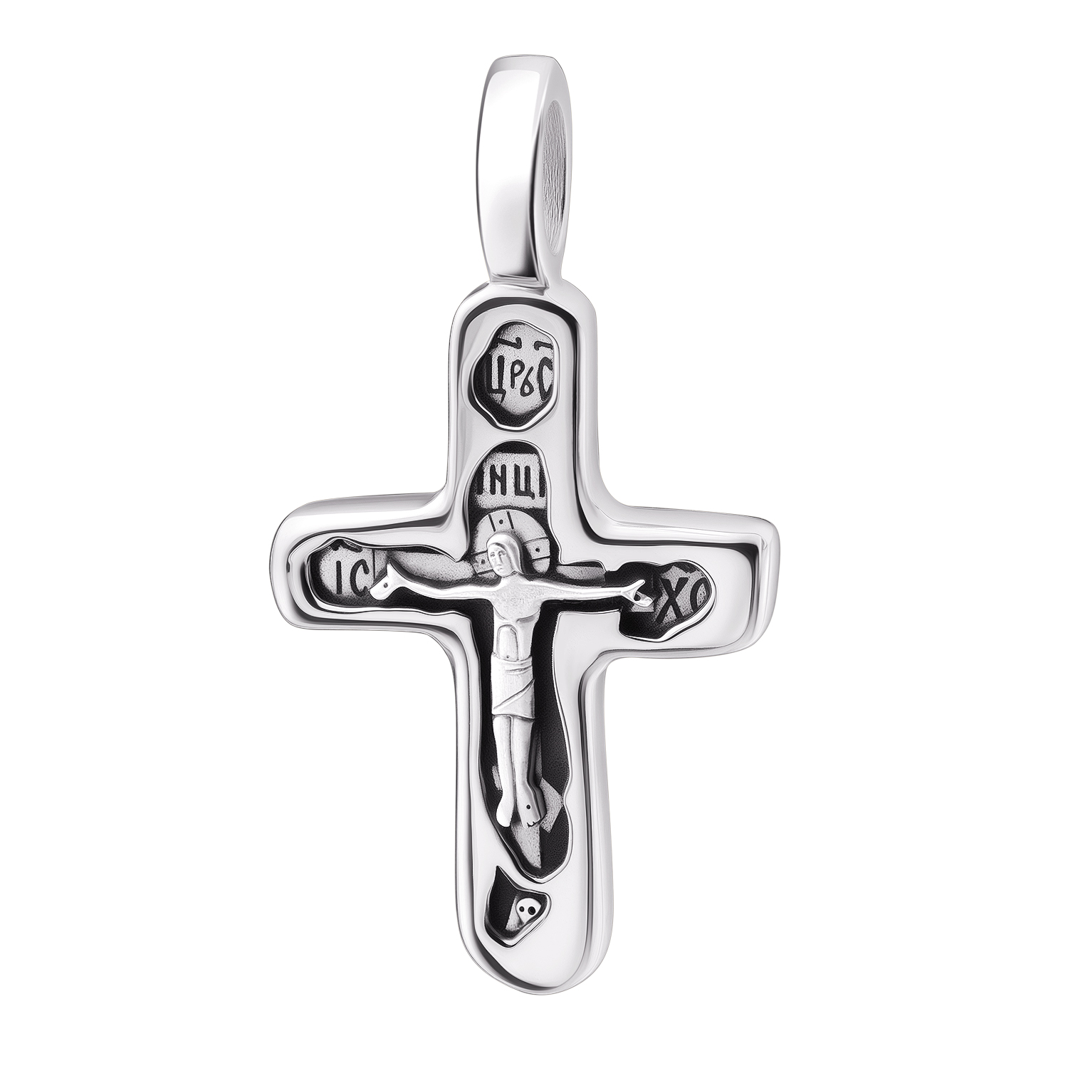 Молитва «Спаси и сохрани» украшает оборот нашего креста, как и оборот многих других современных нательных крестов. А выделяется наше изделие обтекаемой и ассиметричной формой и углублениями, образующими несколько плоскостей. Это литая гладкая поверхность креста, внутренняя плоскость и рельефное Распятие, выступающее над нею.