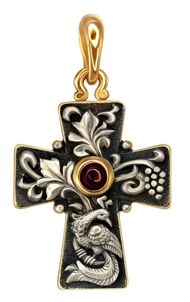 Крест выпускается в двух вариантах - серебре и серебре с позолотой. Подробности уточняйте, пожалуйста, у оператора при заказе.