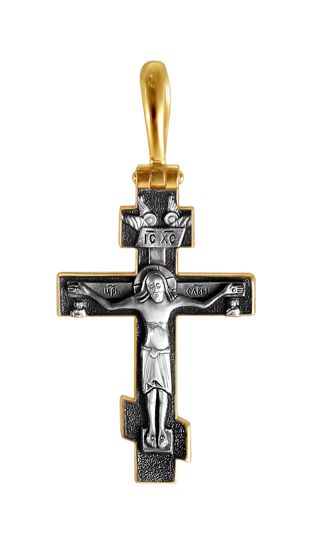 Крест выпускается в двух вариантах - в серебре и в серебре с позолотой. Подробности уточняйте, пожалуйста, у оператора при заказе.