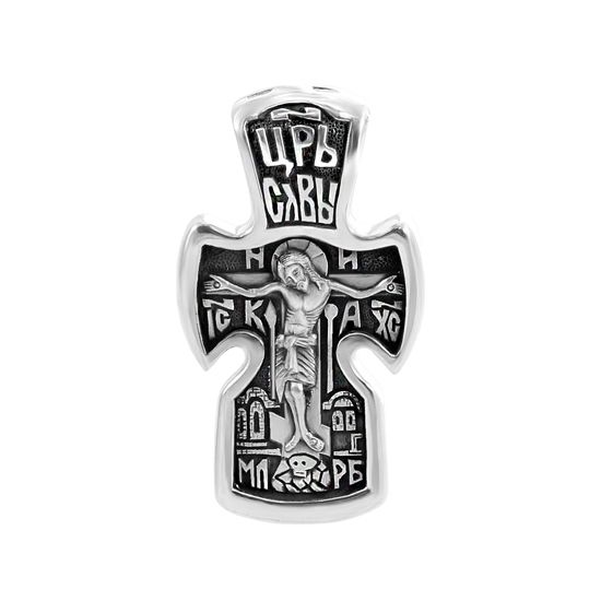 Крест выпускается в двух вариантах - серебре и серебре с позолотой. Подробности уточняйте, пожалуйста, у оператора при заказе.