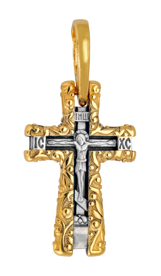 Крест выпускается в двух вариантах - серебре и серебре с позолотой. Подробности уточняйте, пожалуйста, у оператора при заказе.
