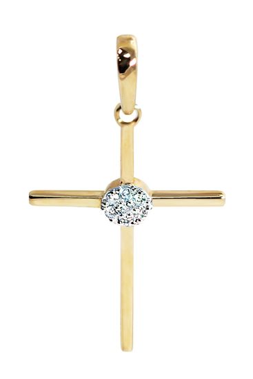 Изящный и лаконичный крестик современного дизайна из желтого золота с бриллиантами.