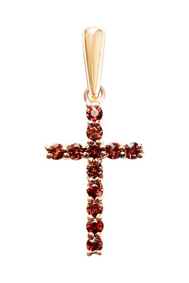 На Руси золотые кресты с камнями изготавливались и носились очень часто. Свет, излучаемый камнями на кресте символизирует сияние фаворского света, а использование граната служит напоминанием о крови Христовой, пролитой за нас. В церковном искусстве, абсолютно каждый элемент имеет значение, поэтому даже такие, на первый взгляд, утонченные и изысканные изделия из золота, служат напоминанием христианину о Божественном свете.