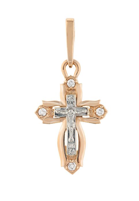 Крестик с комбинацией красного, белого золота и бриллиантов. Крест соответствует православным канонам и освящен. Небольшой размер крестика делает его отличным подарком на крещение ребенка.