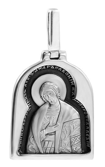Святой князь Александр Невский оставил след в истории прежде всего как дальновидный политик и талантливый полководец – недаром на оборотной стороне образка помещен щит. Однако для прославления в лике святых недостаточно побеждать в битвах. Поклоняясь святому князю Александру, мы в первую очередь видим в нем молитвенника за нашу Родину и нашу веру, а также образец таких христианских добродетелей как умение прощать обидчиков, терпение, смирение, непоколебимость в вере и готовность не щадить себя ради отечества и своего народа.Нетленные мощи благоверного князя были открыты, по видению, пред Куликовской битвой в 1380 г., и тогда же установлено местное празднование. В перенесении мощей благоверного князя Александра Невского в Петербург Промысл Божий усматривал небесное покровительство городу и новой столице России. После завершения торжеств перенесения мощей святого князя Александра Невского императором Петром I было задумано учреждение первого военного ордена в России в честь святого Александра Невского.«Святой и храбрый князь здесь телом почивает;Но духом от небес на град сей призираетИ на брега, где он противных побеждал,И где невидимо Петру споспешествовал.Являя его усердие святое,Сему защитнику воздвигла раку в честь,От первого серебра, что недро ей земноеОткрыло, как на трон благоволила сесть»