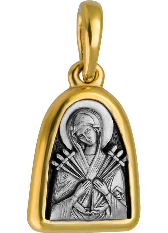 Очень близок к «Умягчению злых сердец» и другой чудотворный образ — икона Божией Матери «Семистрельная». Разница между ними лишь в том, что на «Семистрельной» мечи пишутся немного иначе.
