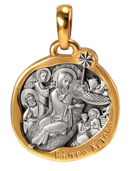Подвеска оригинальной неровной формы, напоминающая старинный медальон, посвящена празднику Рождества Христова. Рельефное иконографическое изображение выполнено с таким художественным вкусом, филигранным мастерством и вниманием к мельчайшим деталям, что можно долго с интересом рассматривать его.