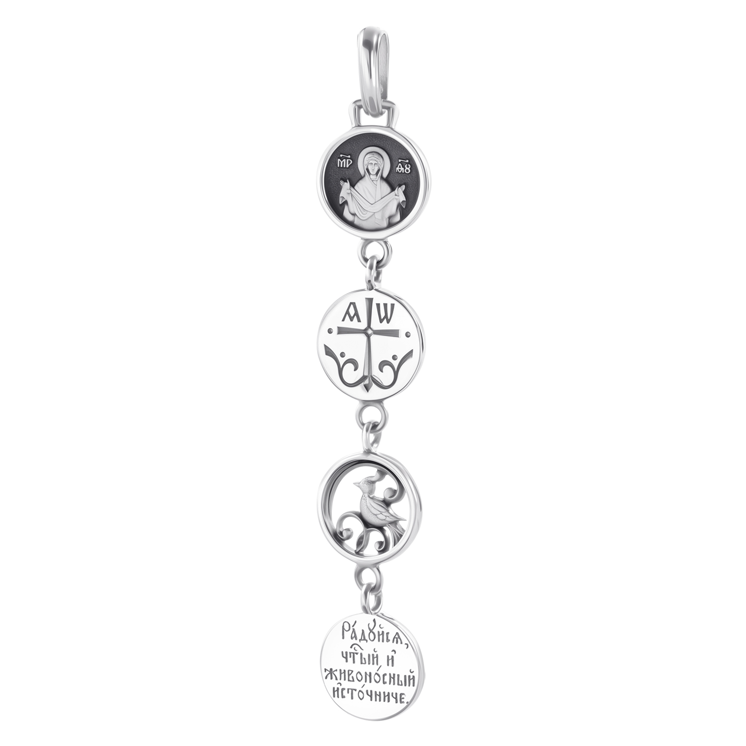 [~DETAIL_TEXT] => Образ Покров Пречистой.Этот праздник отмечают православные только в России - в 1165 году он установлен в Русской Церкви святым князем Андреем Боголюбским и остался почитаем и любим народом."Наши верующие, знающие великую силу ходатайства Матери Божией, сердцем пусть всегда припадают к ногам Божией Матери со своими воздыханиями, нуждами, скорбями, во всех испытаниях и в минуты плача о грехах. И Она, Радость всех скорбящих, наша Небесная Мать, простирая Свой державный Покров, заступит и спасет и помилует всех нас. Аминь." Архимандрит Иоанн (Крестьянкин).Птица - символ души по византийской традиции.Похвала и молитва Богородице: " Радуйся чистый и живоносный источниче!", на обратной стороне: "Пресвятая Богородице, спаси нас!"