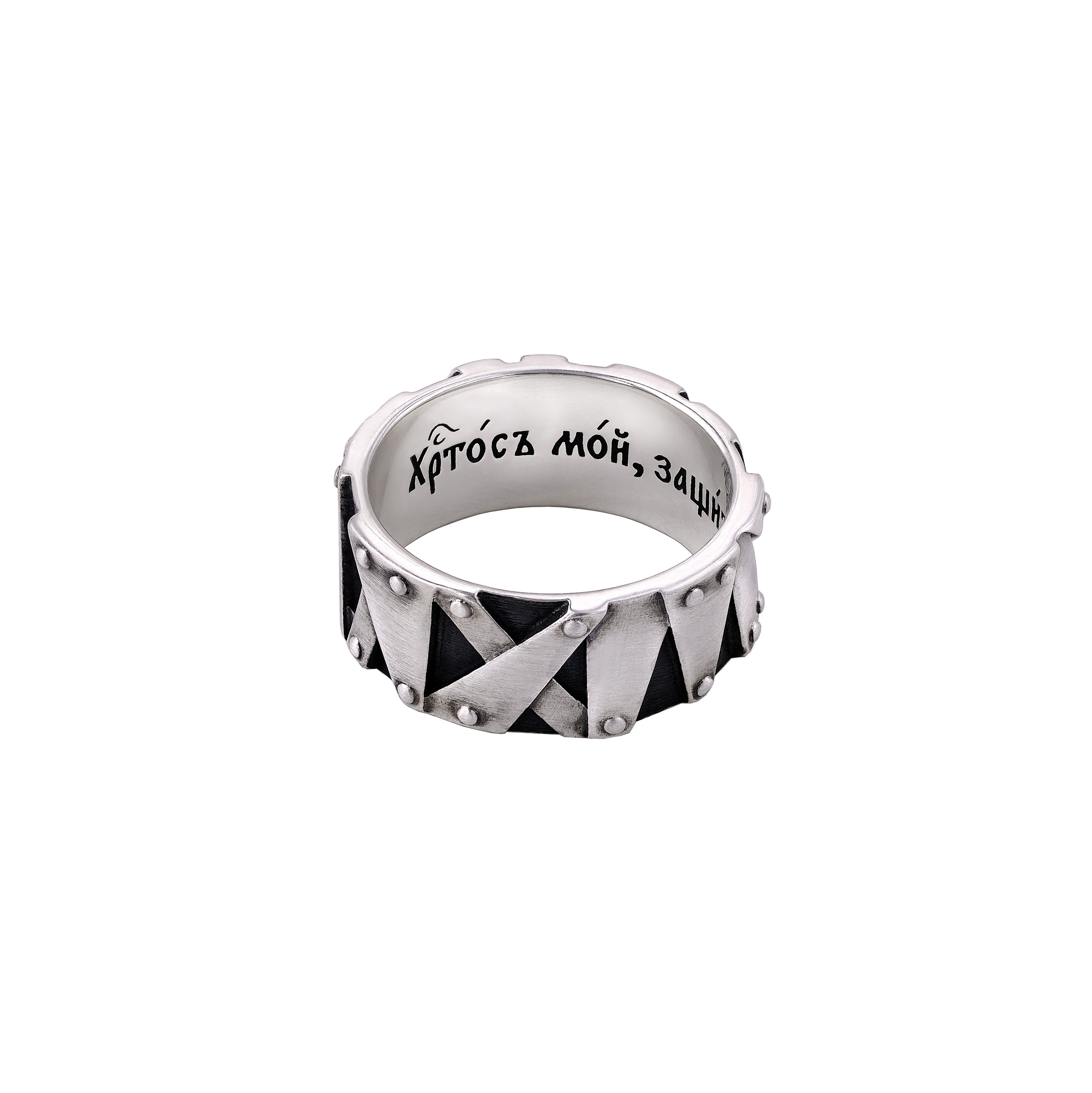 [~DETAIL_TEXT] => Дизайн этого изделия напоминает нам воинские латы. Подобно тому, как они защищают воина от ран, так и кольцо, с молитвой внутри, напоминает нам о брани духовной, которую каждый из нас ведет ежечасно. Слова молитвы "Христос мой, Защитниче, не отступи от мене" спрятаны внутри, и внешне изделие привлекает внимание только своим необычным дизайном, а о главном смысле кольца знает лишь его обладатель.