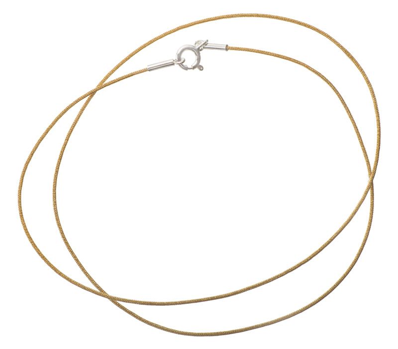Шнурок изготовлен по уникальной японской технологии соединения металла с шелком. Прочный, как металл и нежный, как шелк, устойчивый к водной среде, он прекрасно подойдет для тех, кто носит крестик не снимая. Тоненький и гибкий, он хорош для ребенка. Изящный, он не заметен с другими украшениями и будет замечательным подарком женщине. Замочек из серебра 925 пробы.