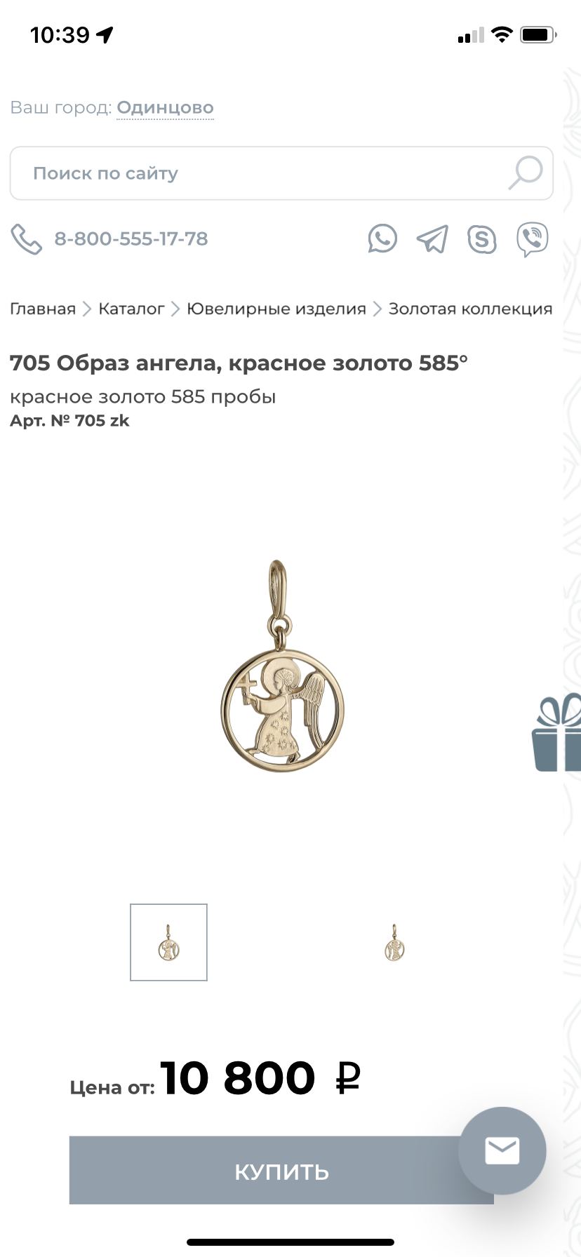 Очень красивая подвеска! Купить невозможно, тк цена не соответсвует действительности! На сайте 10800, а Реальная стоимость от 15440 подняли цены на 50% когда итак все дорого!!! Никаких скидок не предоставляют вообще, ни 5% ни 8% и даже 300 р. За отзыв не действует!!! Не ожидала такого подхода от сайта с освящённым изделиями!!!