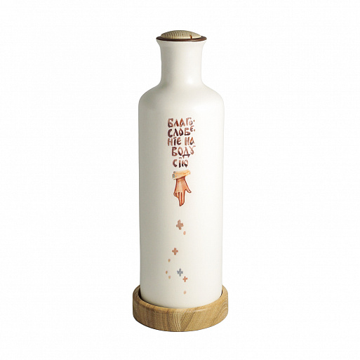 Бутылка объемом 750 мл выполнена из пищевой керамики. Имеет деревянную подставку и закрывается деревянной крышкой.