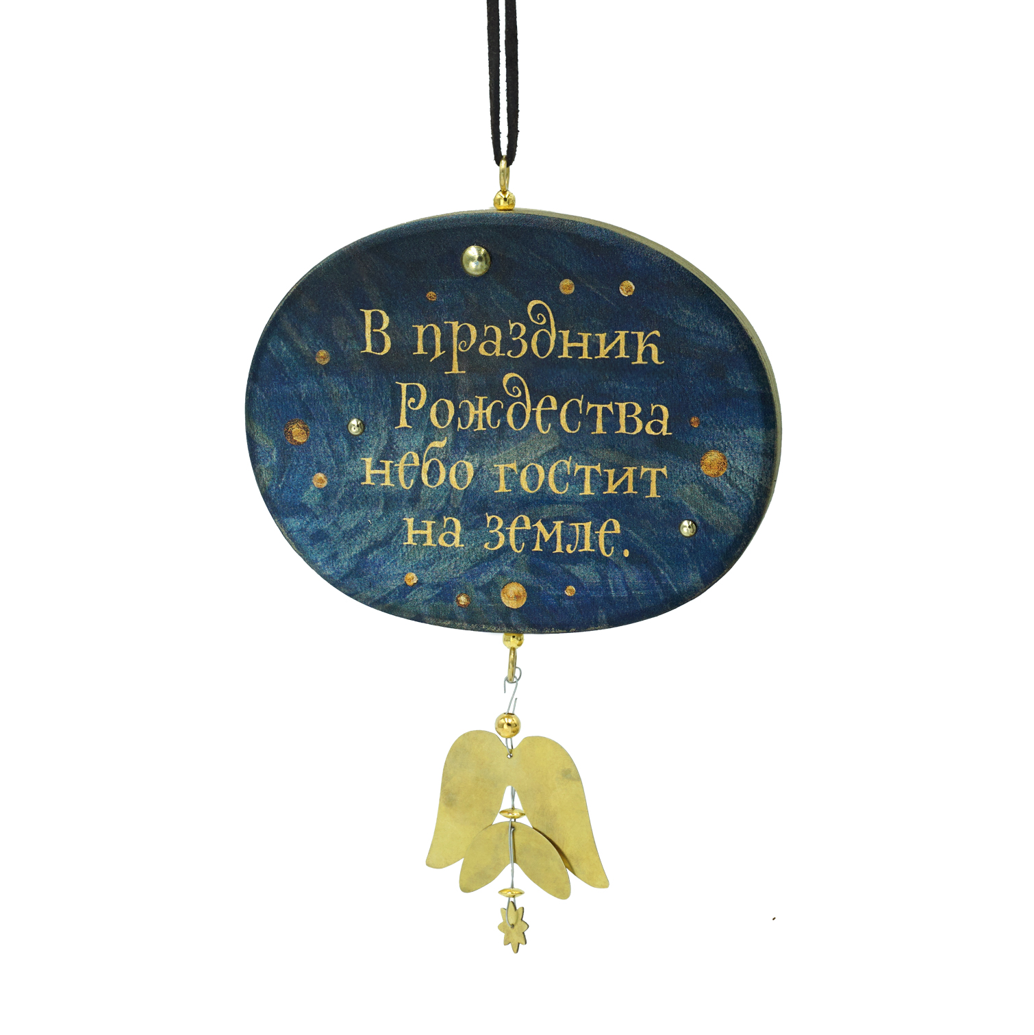 Эта табличка передает настроение той особенной ночи. Темное небо, подвеска в виде Ангела c Вифлеемской звездой, заветные слова…