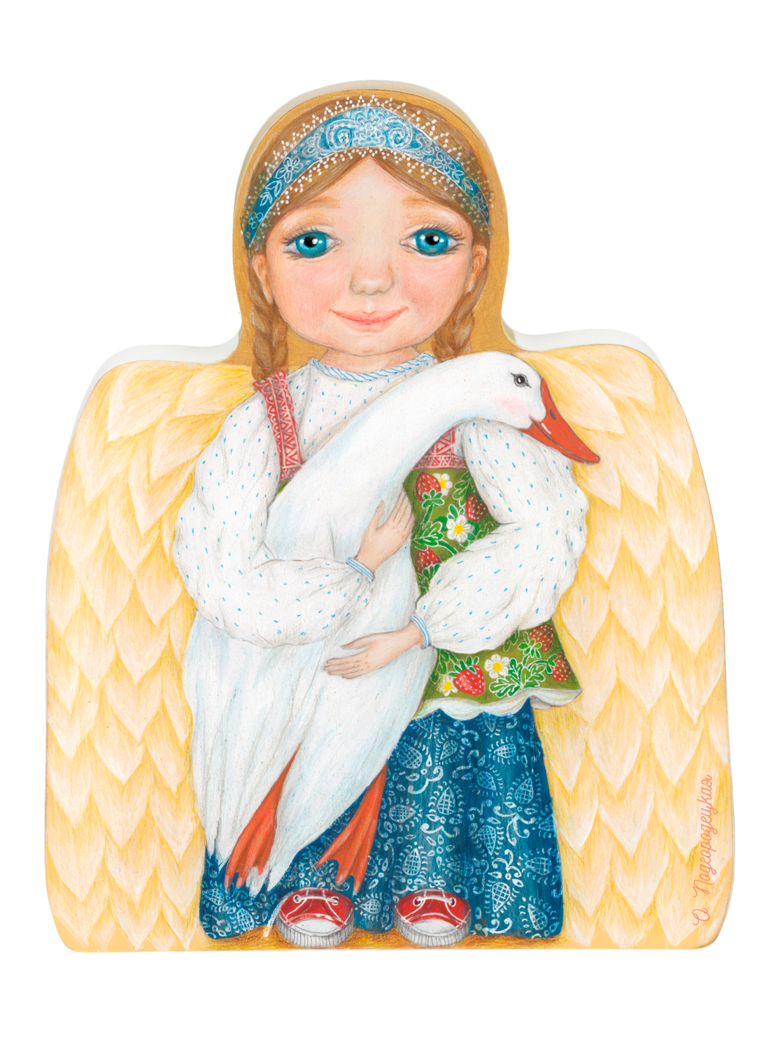 Наша Анечка — «озорница» в кедах. Но весь ее остальной наряд – традиционный, русский. И у нее, и даже у ее гуся есть свои реальные прототипы. Обязательно посетите музей деревянного зодчества Суздаля. Это прекрасная иллюстрация простого крестьянского русского быта. И именно там есть шанс встретить и ту самую Анечку, и того самого гуся.