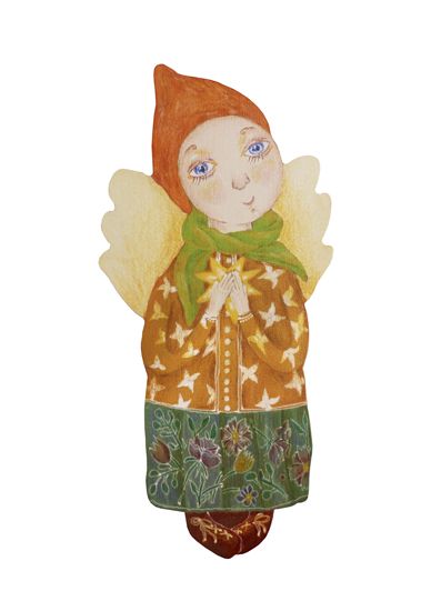 Милая подвесная фигурка ангела хранителя в наивном "детском" стиле может стать прекрасным подарком на Рождество, крестины, день рождения, именины. Её можно повесить над детской кроваткой или поместить в комнате на видное место. На спинке фигурки есть петелька.