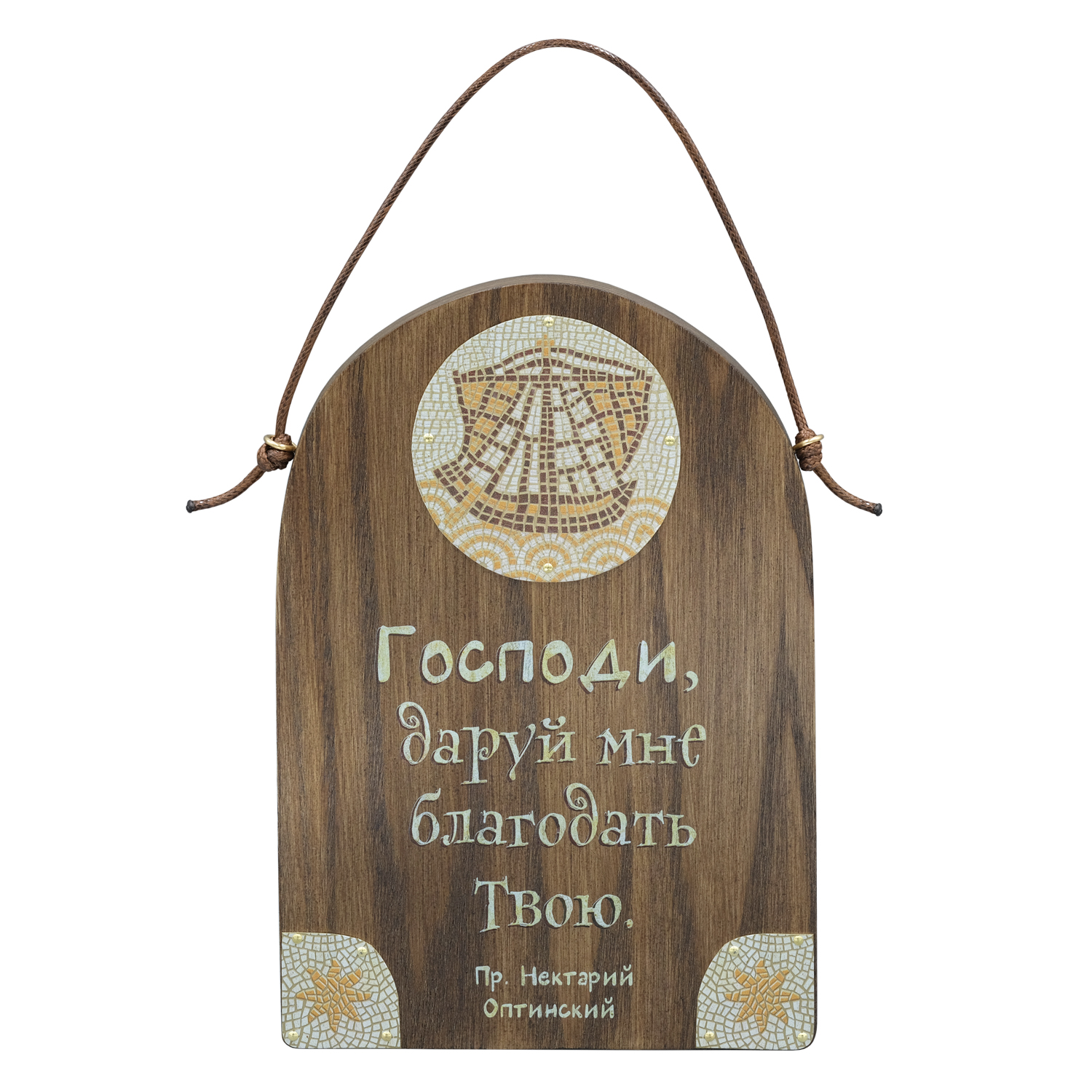 О конечной цели нашей веры говорят и изображения на латунных вставках, оформленных в стиле раннехристианской мозаики. Это корабль - символ Церкви Христовой, спасающей человеческие души в бурном море житейском, - и восьмиконечная звезда - символ Рождества Спасителя. [~DETAIL_TEXT] => «Господи, даруй мне благодать Твою». Этими простыми словами советовал молиться преподобный Нектарий Оптинский. Он уделял молитве особое внимание. Имел утешение только в ней, пребывая в тюрьме и изгнании в последние годы жизни.
